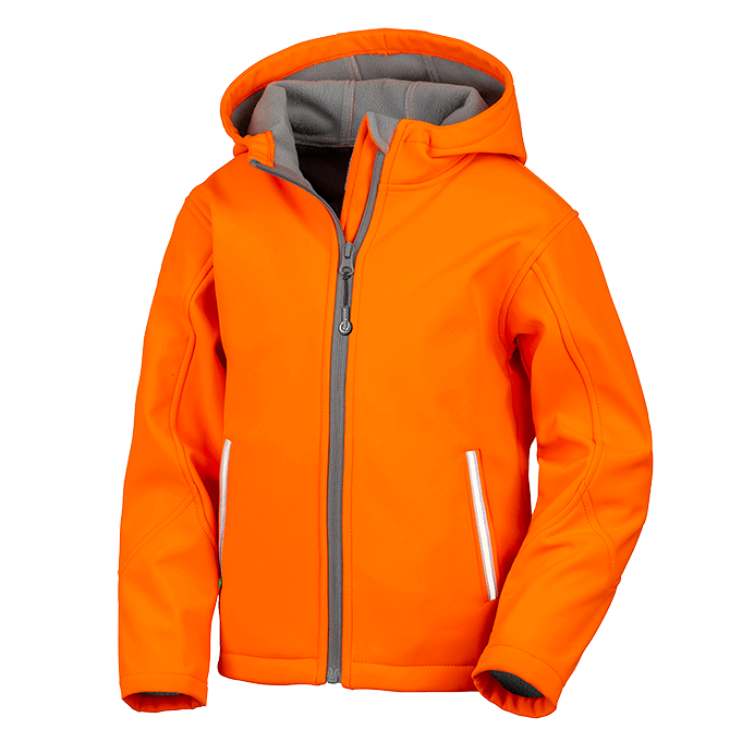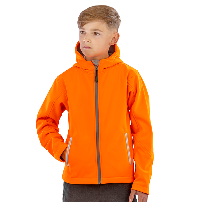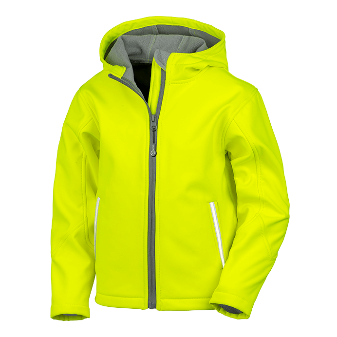 Neon colour additions to this classic 3-layer hooded softshell offers weather protection and visibility for juniors at CORE value price