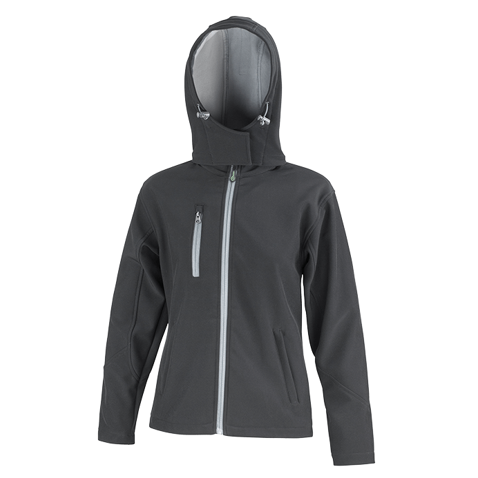 Industry favourite, our best selling hooded softshell jacket for women gets a recycled makeover. At the affordable CORE price tag, this is an eye-catching and practical sustainable hooded jacket.