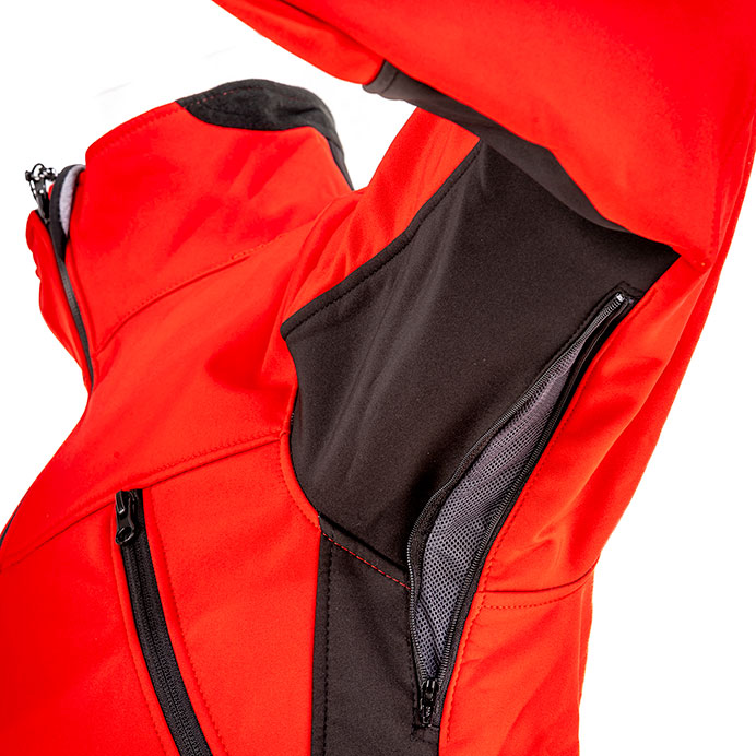 A high stretch, active cut softshell keeps the weather out and the warmth in. Stretch thumb mitt, underarm vents and a YKK front zip make this a sporty essential.